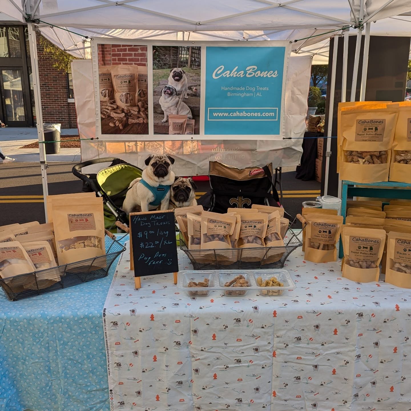 We use only the highest quality ingredients – grown and sourced in Alabama. Spent grain from local breweries is used for some of our most popular flavors, and we have a great selection of grain-free treats too! Bring your pup by our booth for a sample.